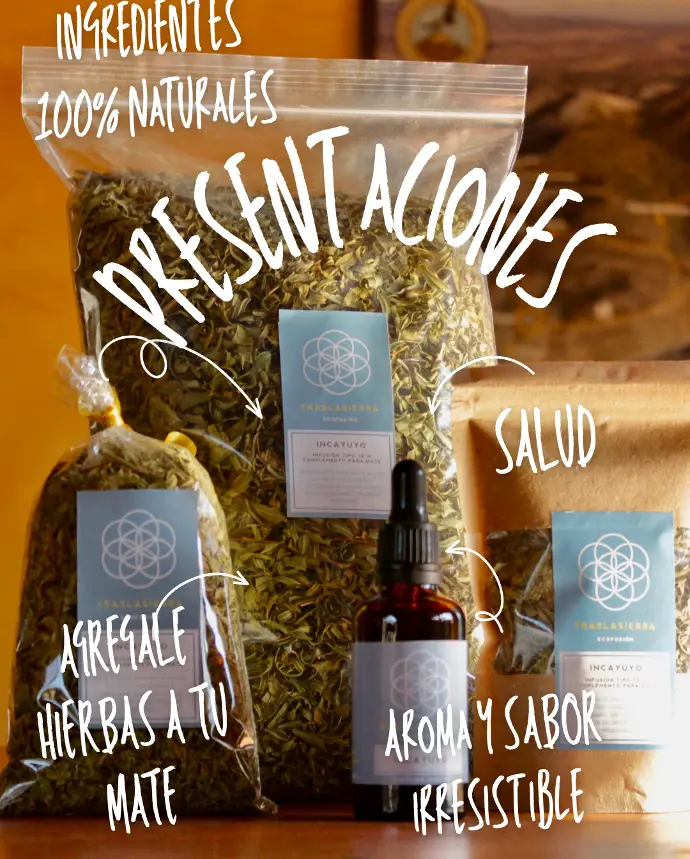 Hierbas seleccionadas, presentadas en doypacks reciclables con diseño gráfico atractivo.